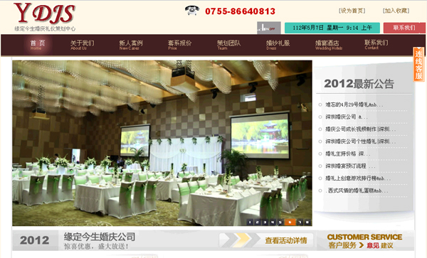 深圳市緣定今生婚慶禮儀策劃有限公司是一家具有時尚色彩的專業(yè)婚禮統(tǒng)籌機構(gòu)。擁有雄厚的婚禮企劃能力、優(yōu)良的服務(wù)體系、資深的策劃專業(yè)人士和獨特創(chuàng)新的婚禮創(chuàng)意制作。形成了自己獨特的策劃風(fēng)格,具有承辦各類中、西式和個性化的流行時尚婚禮的豐富經(jīng)驗,可以向新人提供全方位、個性化的專業(yè)服務(wù)。及先進(jìn)的管理模式使我們在同行業(yè)的競爭中脫穎而出,獨樹一幟。