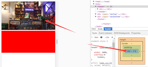 這時(shí)候在chrome谷歌瀏覽器中調(diào)試效果,發(fā)現(xiàn)圖片寬度變成了980px,然后各種算rem算不對(duì),