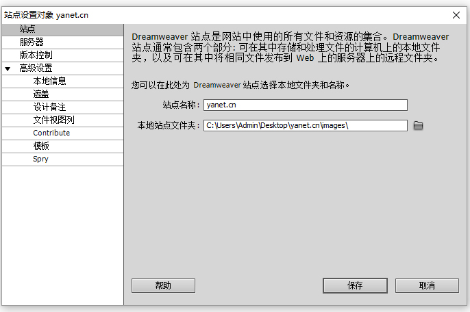 最后你在dreamweaver主界面可以看到出現(xiàn)了本地的站點(diǎn)。這證明你的站點(diǎn)建立完成。你以后的網(wǎng)站文件都會存儲在你的這個(gè)文件夾下。如圖: