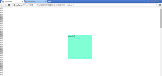 <!doctype html> <html lang="zh-cn"> <head> <meta charset="UTF-8"> <title>Document</title> <style> *{ margin: 0px; padding: 0px; } #a{ width: 200px; height: 200px; background-color: aquamarine; position: fixed; top: 0px; left: 0px; right: 0px; bottom: 0px; margin: auto; } </style> </head> <body> <p>123</p><p>123</p><p>123</p><p>123</p><p>123</p><p>123</p><p>123</p> <p>123</p><p>123</p><p>123</p><p>123</p><p>123</p><p>123</p><p>123</p> <p>123</p><p>123</p><p>123</p><p>123</p><p>123</p><p>123</p><p>123</p> <p>123</p><p>123</p><p>123</p><p>123</p><p>123</p><p>123</p><p>123</p> <p>123</p><p>123</p><p>123</p><p>123</p><p>123</p><p>123</p><p>123</p> <p>123</p><p>123</p><p>123</p><p>123</p><p>123</p><p>123</p><p>123</p> <p>123</p><p>123</p><p>123</p><p>123</p><p>123</p><p>123</p><p>123</p> <p>123</p><p>123</p><p>123</p><p>123</p><p>123</p><p>123</p><p>123</p> <p>123</p><p>123</p><p>123</p><p>123</p><p>123</p><p>123</p><p>123</p> <p>123</p><p>123</p><p>123</p><p>123</p><p>123</p><p>123</p><p>123</p> <p>123</p><p>123</p><p>123</p><p>123</p><p>123</p><p>123</p><p>123</p> <p>123</p><p>123</p><p>123</p><p>123</p><p>123</p><p>123</p><p>123</p> <p>123</p><p>123</p><p>123</p><p>123</p><p>123</p><p>123</p><p>123</p> <p>123</p><p>123</p><p>123</p><p>123</p><p>123</p><p>123</p><p>123</p> <p>123</p><p>123</p><p>123</p><p>123</p><p>123</p><p>123</p><p>123</p> <p>123</p><p>123</p><p>123</p><p>123</p><p>123</p><p>123</p><p>123</p> <p>123</p><p>123</p><p>123</p><p>123</p><p>123</p><p>123</p><p>123</p> <p>123</p><p>123</p><p>123</p><p>123</p><p>123</p><p>123</p><p>123</p> <p>123</p><p>123</p><p>123</p><p>123</p><p>123</p><p>123</p><p>123</p> <p>123</p><p>123</p><p>123</p><p>123</p><p>123</p><p>123</p><p>123</p> <p>123</p><p>123</p><p>123</p><p>123</p><p>123</p><p>123</p><p>123</p> <div id="a"> sdvcdvf </div> </body> </html>