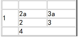 <table width="300" border="2"> <tr> <th scope="col"> </th> <th scope="col"> </th> <th scope="col"> </th> </tr> <tr> <td rowspan="2">1